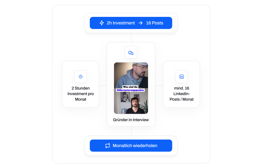 - Interview-basierter Content: Wir extrahieren deine Expertise, statt generische Posts zu schreiben